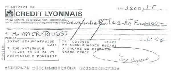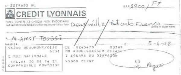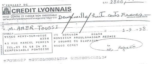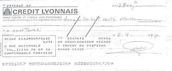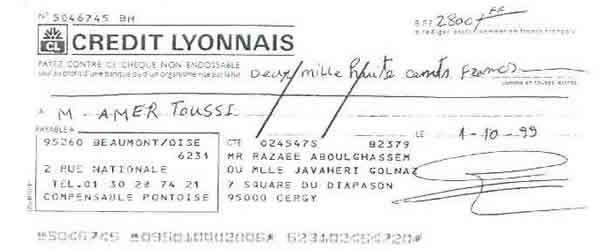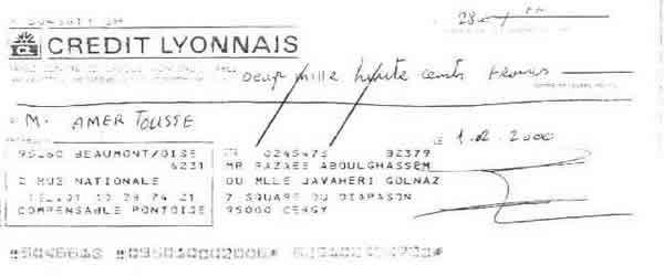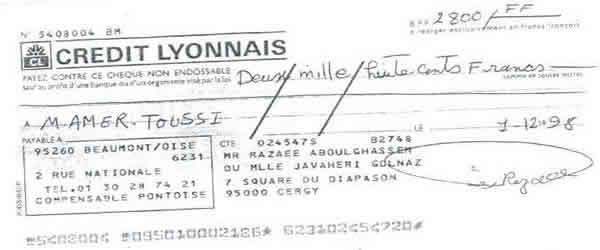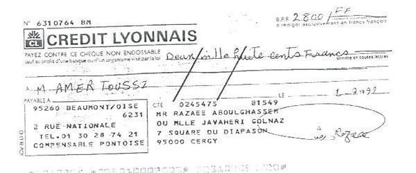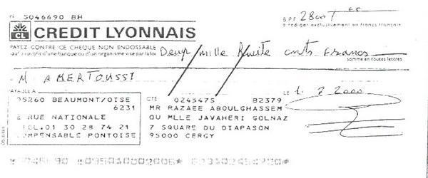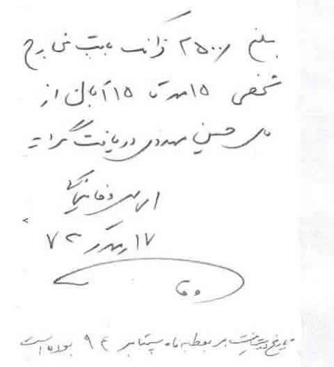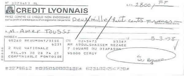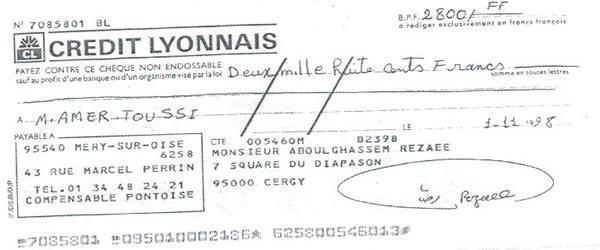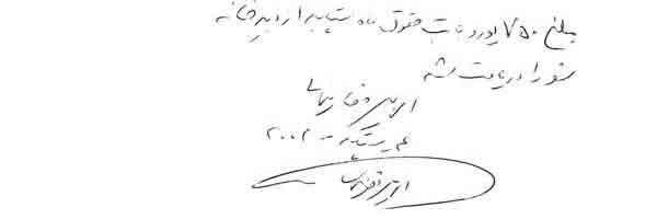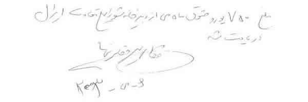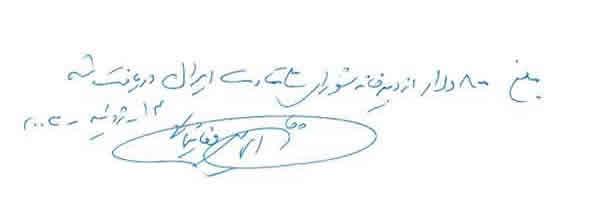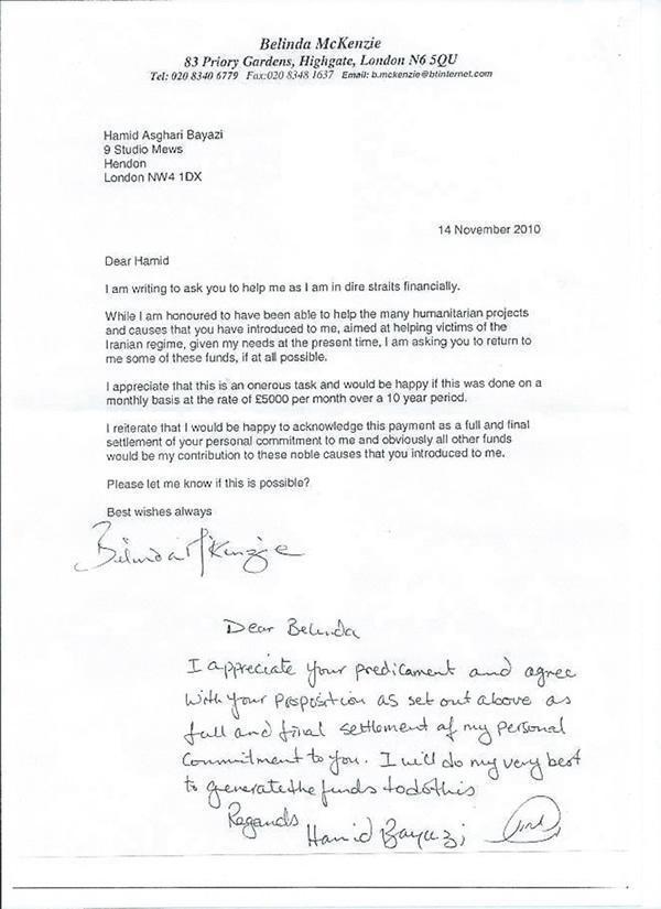 « حمید عزیز، این نامه را برای این می نویسم كه تو مرا كمك كنی زیرا در شرایط مالی نابسامانی هستم. در عین حال كه مفتخرم كه توانسته ام به پروژه ها و موضوعات انساندوستانه زیادی كمك كنم كه تو به من معرفی كردی و در رابطه با قربانیان رژیم ایران بود، با توجه به وضعیت فعلی ام از تو میخواهم در صورت امكان برخی پولها به من برگردانده شود.