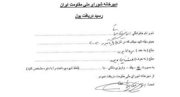 اسناد پولهایی كه قصیم از مجاهدین گرفته است