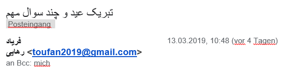 13-سايبري رژيم آخوندي با ايميل ساختگي ” اچ-ملي“ h meli896@gmail.co كه از روي ايميل همبستگي ملي اقتباس شده است به پخش اطلاعات دروغ و لجن پراکنی عليه مجاهدين و مقاومت مبادرت ميكند. ايميل اصلي hmeli896@gmail.com ميباشد كه سايبري آخوندي بين دو حرف h و m يك فاصله گذاشته است.