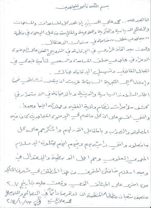 نهایتاً آخوند فرومایة مدعی شیعه در لبنان، عهد و پیمان خود برای ایستادن در برابر تروریسم و استبداد دینی ولایت فقیه را صریحاً در یك ایمیل به تاریخ 13 مارس 2017 زیر پا گذاشت و منتفی اعلام كرد. وی همزمان به شانتاژ روزانه برای اخاذی از مجاهدین روی آورد اما مجاهدین اعتنایی ننموده و با او قطع رابطه كردند.