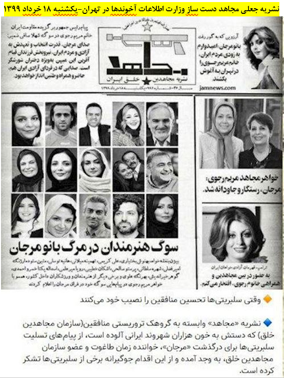 اين نخستين بار نيست كه وزارت اطلاعات و مأمورانش به جعل ايميل، پست هاي اينترنتي، حسابهاي جعلي و حتي جعل نشريه مجاهد مبادرت ميكنند. در خرداد گذشته پس از درگذشت خانم مرجان، وزارت بدنام يك نشريه مجاهد جعلي منتشر و به دروغ ادعا كرد نشريه مجاهد تصوير علي كريمي و 15 بازيگر را تحت عنوان «سوگ هنرمندان در مرگ بانو مرجان» منتشر كرده است. هدف، برانگيختن آنها به موضعگيري عليه مجاهدين بود.
