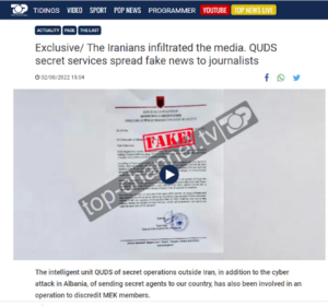 یک منبع اطلاعاتی آلبانیایی فاش کرد: «واحد اطلاعات عملیات مخفی قدس در خارج از ایران، علاوه بر حمله سایبری در آلبانی، با اعزام ماموران مخفی به عملیات بدنام کردن اعضای مجاهدین خلق نیز اشتغال داشته است. این واحد برای تحقق این امر تلاش کرده است تا در رسانههای آلبانی نیز نفوذ کند» (تاپ چنل-۲ اوت ۲۰۲۲)