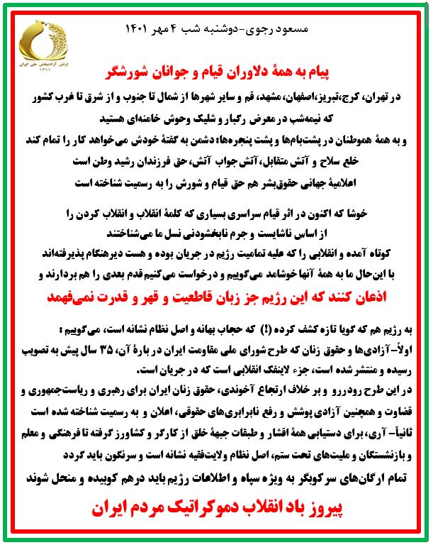 1401مسعود رجوی-دوشنبه شب 4 مهر