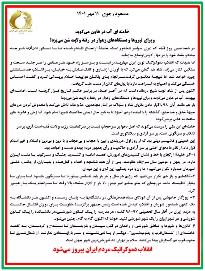 مسعود رجوی-۱۱ مهر ۱۴۰۱