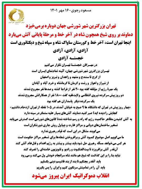 مسعود رجوی-۱۶ مهر ۱۴۰۱