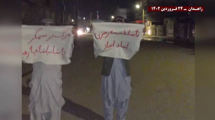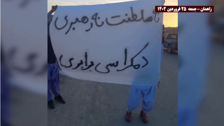 روز جمعه ۲۵ فروردين برغم جو شديد امنيتي جوانان شورشگر در خيابانهاي زاهدان شعارهاي »مرگ بر ستمگر، چه شاه باشه چه رهبر«، »نه سلطنت نه رهبري، دموكراسي برابري« و »مرگ بر خامنه اي، درود بر رجوي« را به صورت بنرها و پالكارهادي بزرگ با خود حمل و همچنين ديوار نويسي ميكردند. روز پنجشنبه ۲۴ فروردين نيز جوانان بلوچ با شعارهای »دمكراسي آزادي، با مريم رجوي«، »نه تاج و نه عمامه، نظام كارش تمامه«، »مرگ بر خامنه اي، درود بر رجوي«، »مرگ بر ستمگر، چه شاه باشه چه رهبر«، »بلوچستان بيداره، از شاه و شيخ بيزاره« و »خون شهدا را نه مي بخشيم و نه فراموش ميكنيم«، به خيابان آمدند و شعارهاي مشابهي بر ديوارها نوشتند.