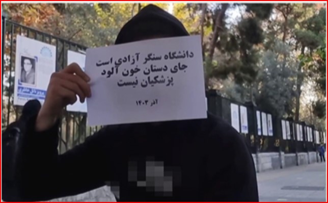 «دانشگاه سنگرآزادی، پزشكیان برو گمشو»، «پزشكيان استعفا ، استعفا»، «دانشگاه قلب تپنده آزادی است، جای دستان خون آلود پزشکیان نیست»