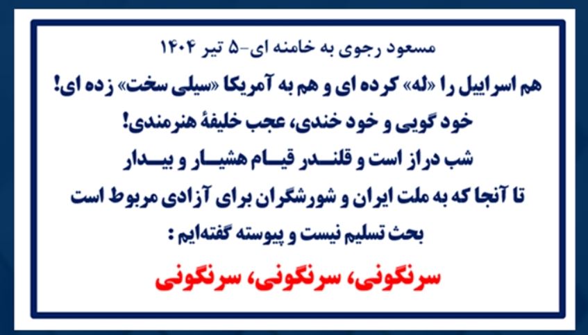 مسعود رجوی به خامنهای-۵ تیر ۱۴۰۴