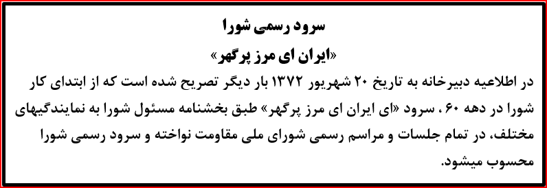 ۲۲ مهر ۱۳۷۶ بخشنامه امنیتی و حفاظتی قابل توجه اعضای محترم شورای ملی مقاومت از آنجا که چندین نمونه از تماس و مراجعه وزارت اطلاعات رژیم و یا اعمال فشار از طریق خانوادهها از داخل کشور ر روی اعضای شورا وجود داشته، خواهشمند است در چارچوب مرزبندیها و التزامات اکید شورایی در برابر رژیم آخوندی، هرگونه تشبثات این چنینی را بلادرنگ با کمیسیون امنیت و ضد تروریسم شورا در میان بگذارید. خاطرنشان میکنم تأخیر در این امر حیاتی، دارای زیانها و خطرات امنیتی و اطلاعاتی و حفاظتی است و میتواند علاوه بر حیثیت فرد